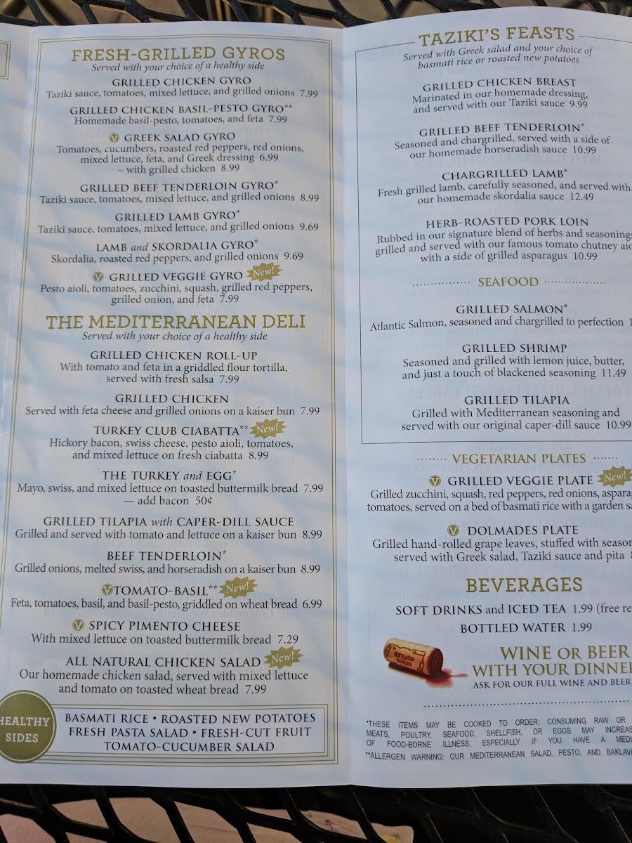 Welcome to Taziki's Mediterranean Cafe - Cary - RTP, where flavors from the Mediterranean come alive. Nestled at 7161 O'Kelly Chapel Rd, Cary, NC, this vibrant eatery is your go-to spot for both dine-in and takeout delights. The menu showcases a beautifully curated selection of dishes, highlighting the freshness of ingredients and expert cooking techniques.